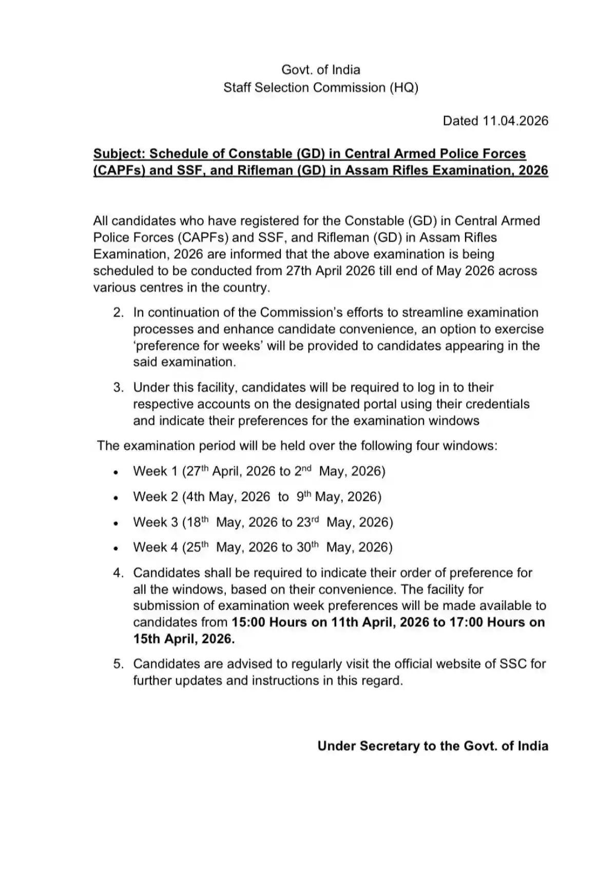 Q2. Can I choose my preferred exam date? Yes! As per the new notification, candidates can log in to the SSC portal between April 11 and April 15, 2026, to submit their “preference for weeks.”